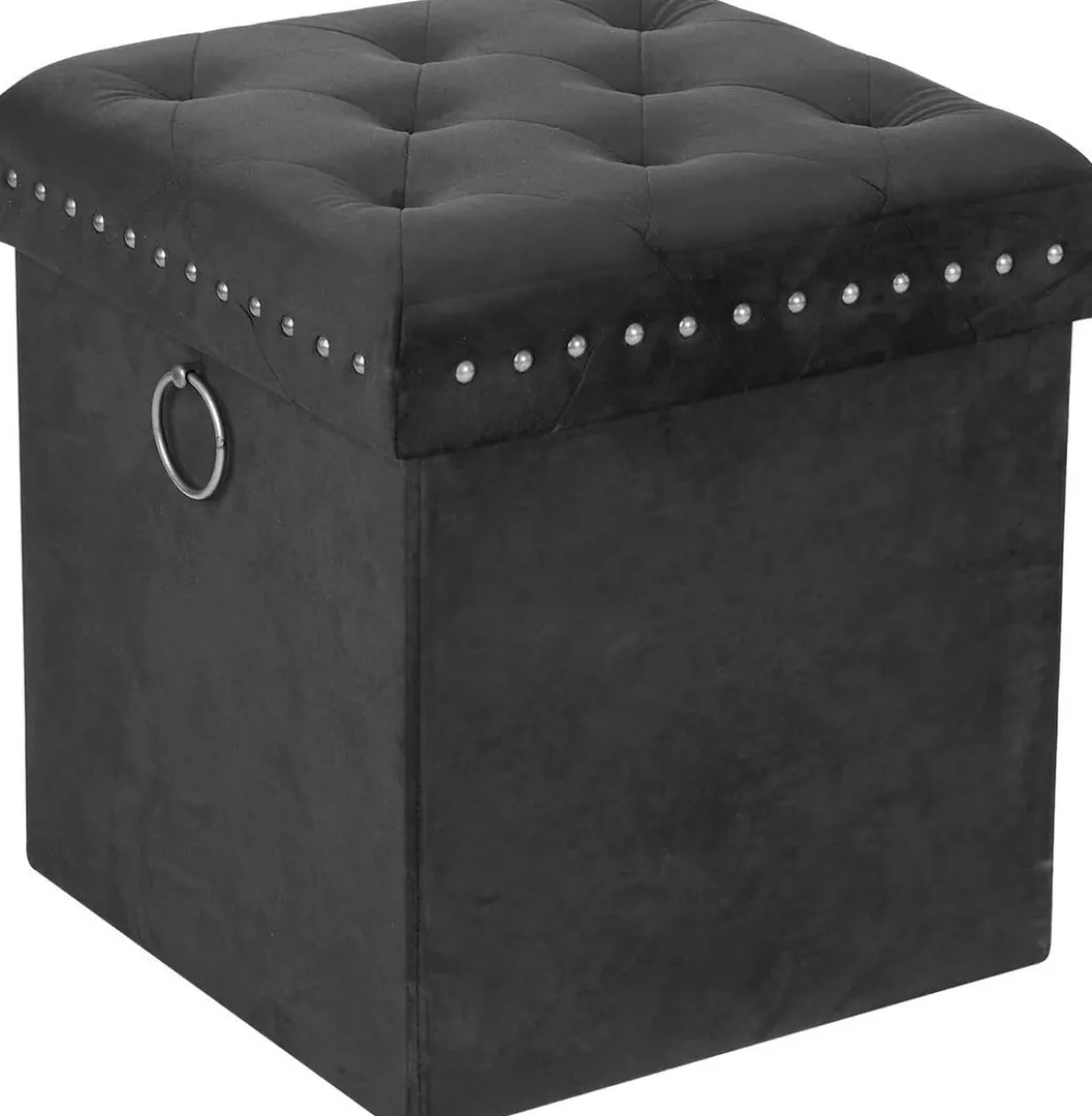 The Inspire Me! Home Décor Anastasia Ottoman features soft tufted velvet upholstery and is extremely versatile in its functionality. It provides comfortable seating for your family members and guests and allows items to be stored neatly inside simultaneously. You can also use it as a foot rest. It provides a good amount of space for hidden storage. Great for shoes, small toys, remotes, wires, and so much more. Featuring metal studs and handle detailing in brushed brass, it instantly adds a luxurious touch to your home. Use it in the entryway to sit down while you slip on your shoes in the morning, place it in your living room for extra seating, or use it in your bedroom as a beautiful accent piece. This ottoman assembles in just a few seconds and no tools are needed, so you can put it to use right away without worry. Moreover, it folds flat when not in use. Fantastic for your own space and also great as a housewarming gift because of its versatility and usefulness.