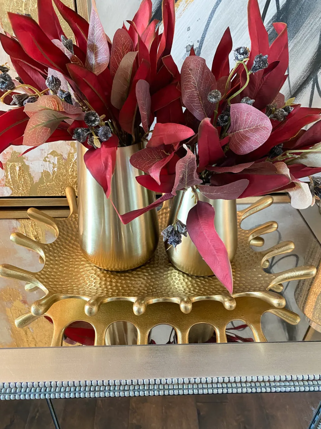 Description: This stylish tray features a unique splash design! Perfect to add a fun touch to your vignette! Available in silver and gold.