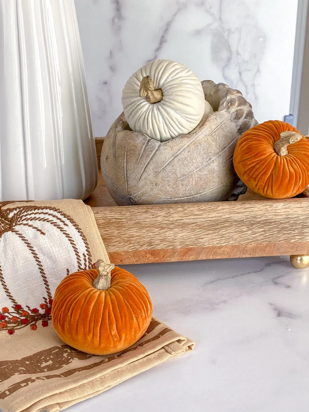 Description: These mini velvet pumpkins are the definition of fall! We love styling them in our bowls or on our trays! The traditional orange color rings true with the fall season.