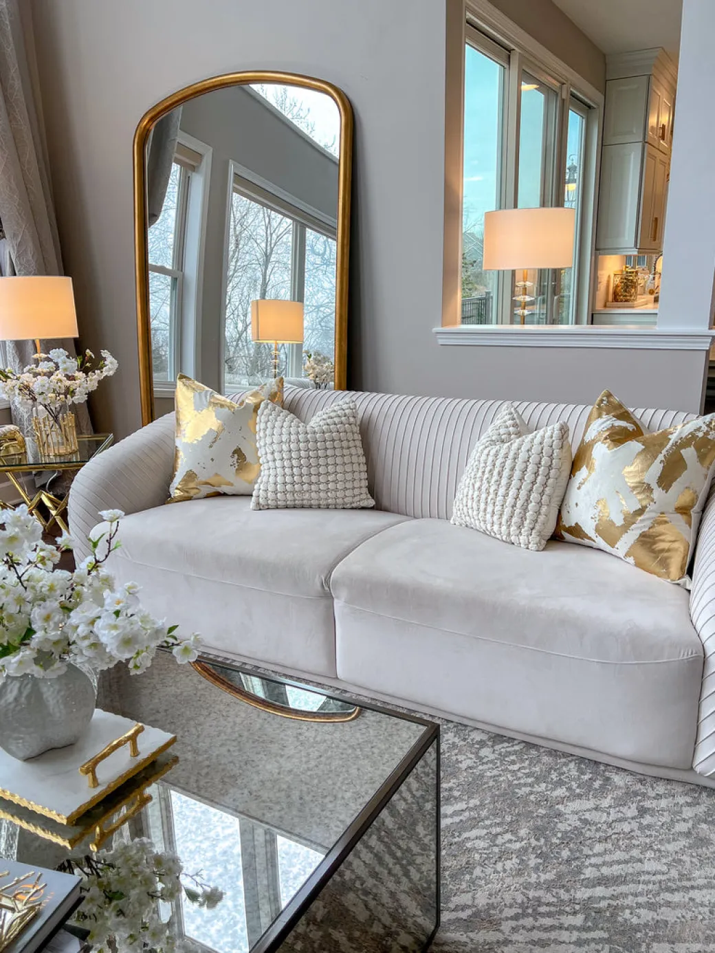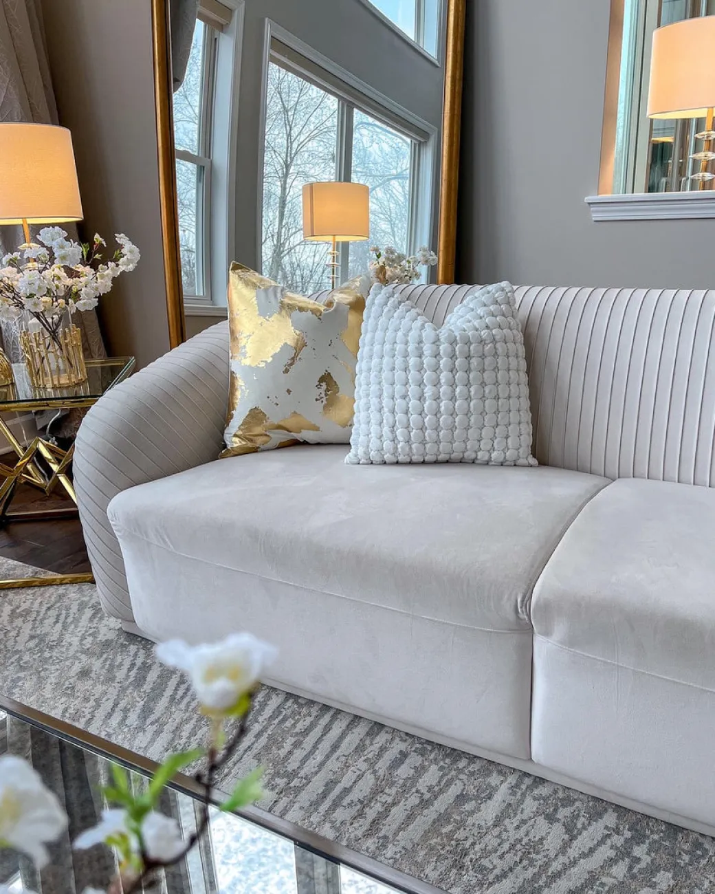 This Serena has a smocked patterned front and adds a soft glam to any room.