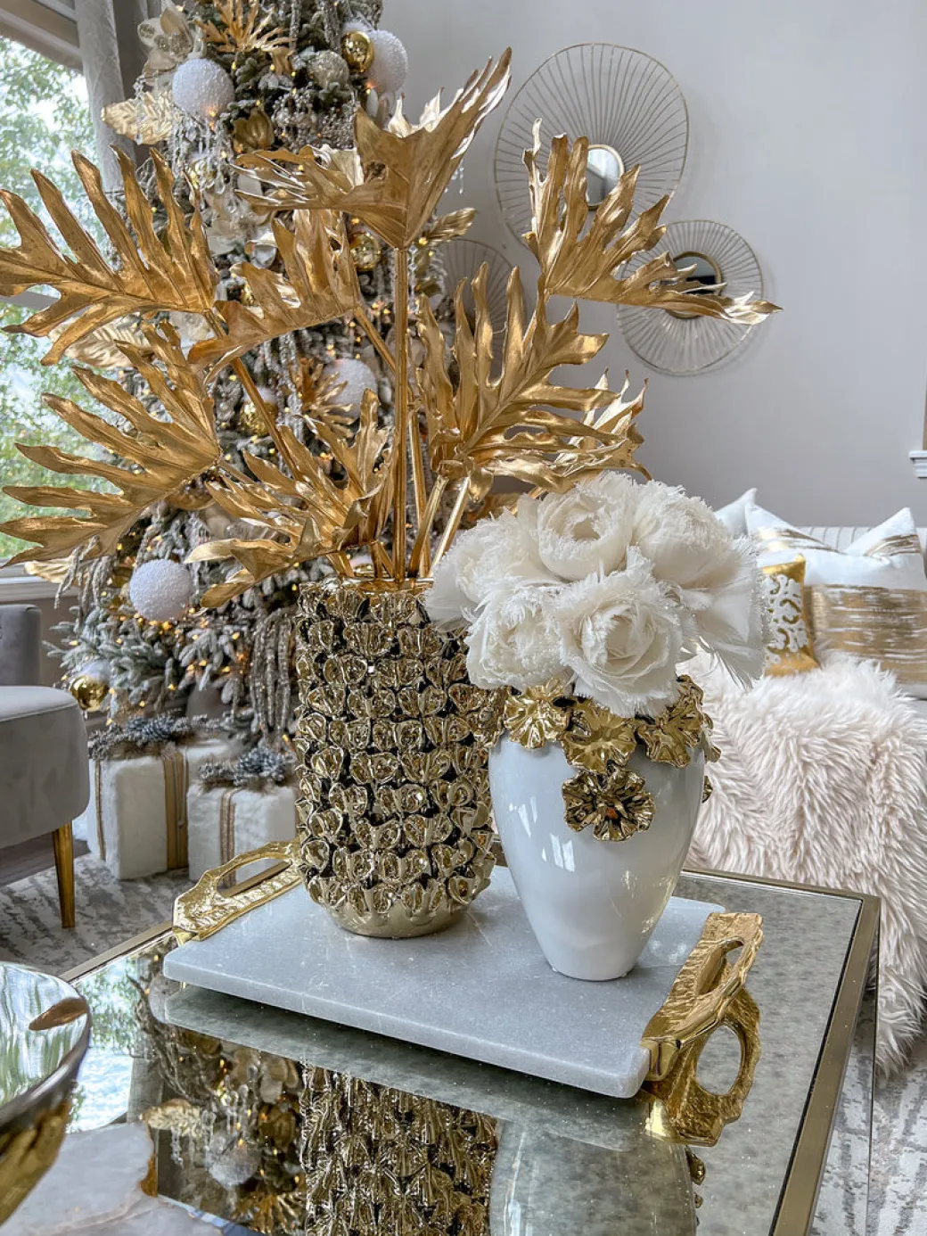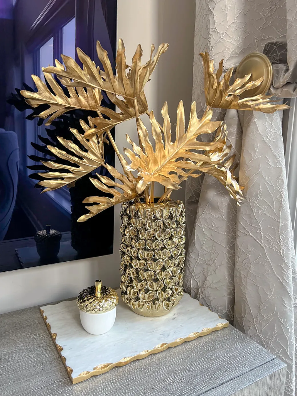 Description: This golden metallic leaf spray will add a touch of glamour to your holiday displays or floral arrangements all year round!