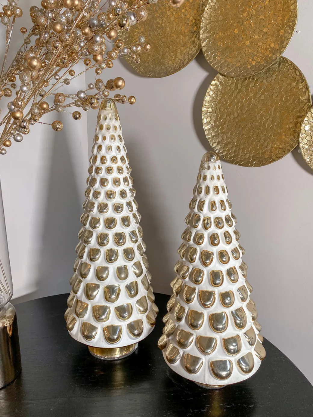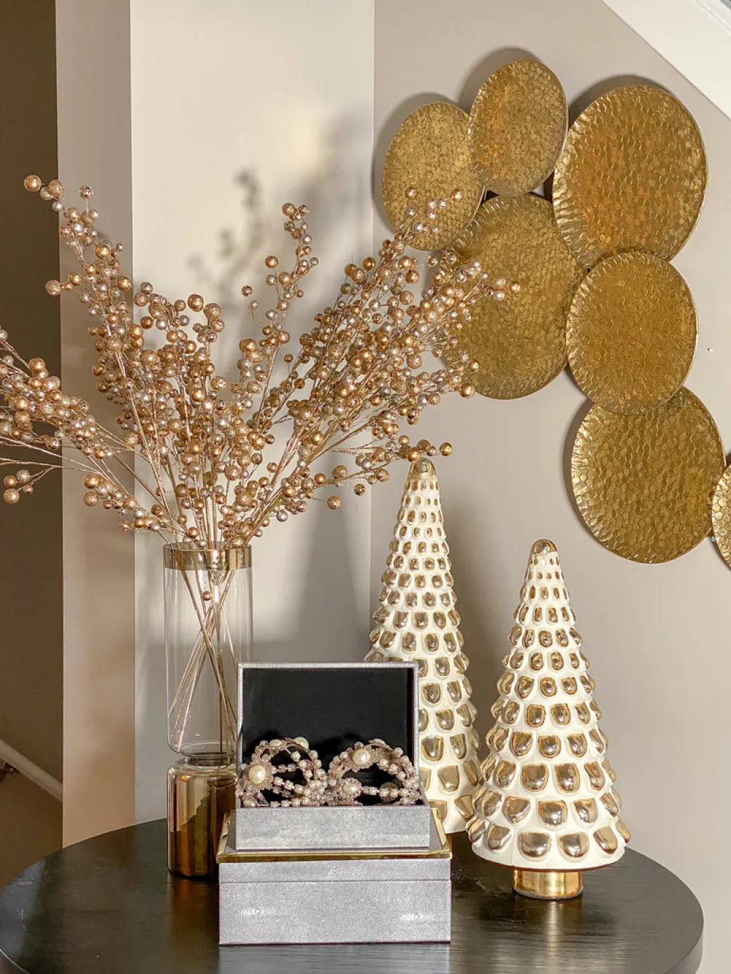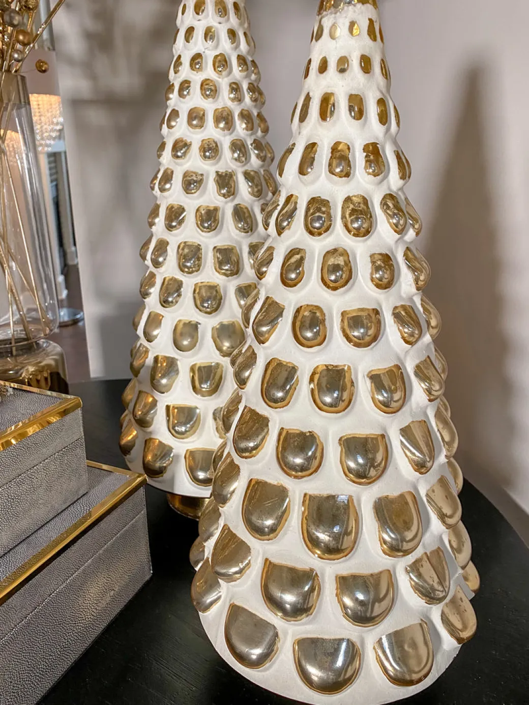This gorgeous ceramic tree has metallic gold accents and a gold trunk.