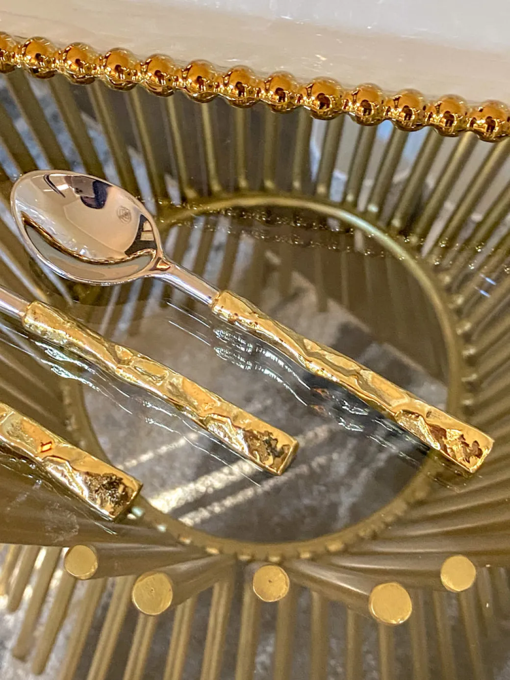 These spoons are great for your tea cups and for displaying on your coffee station. They match the Crumpled Gold Handle Forks perfectly!
