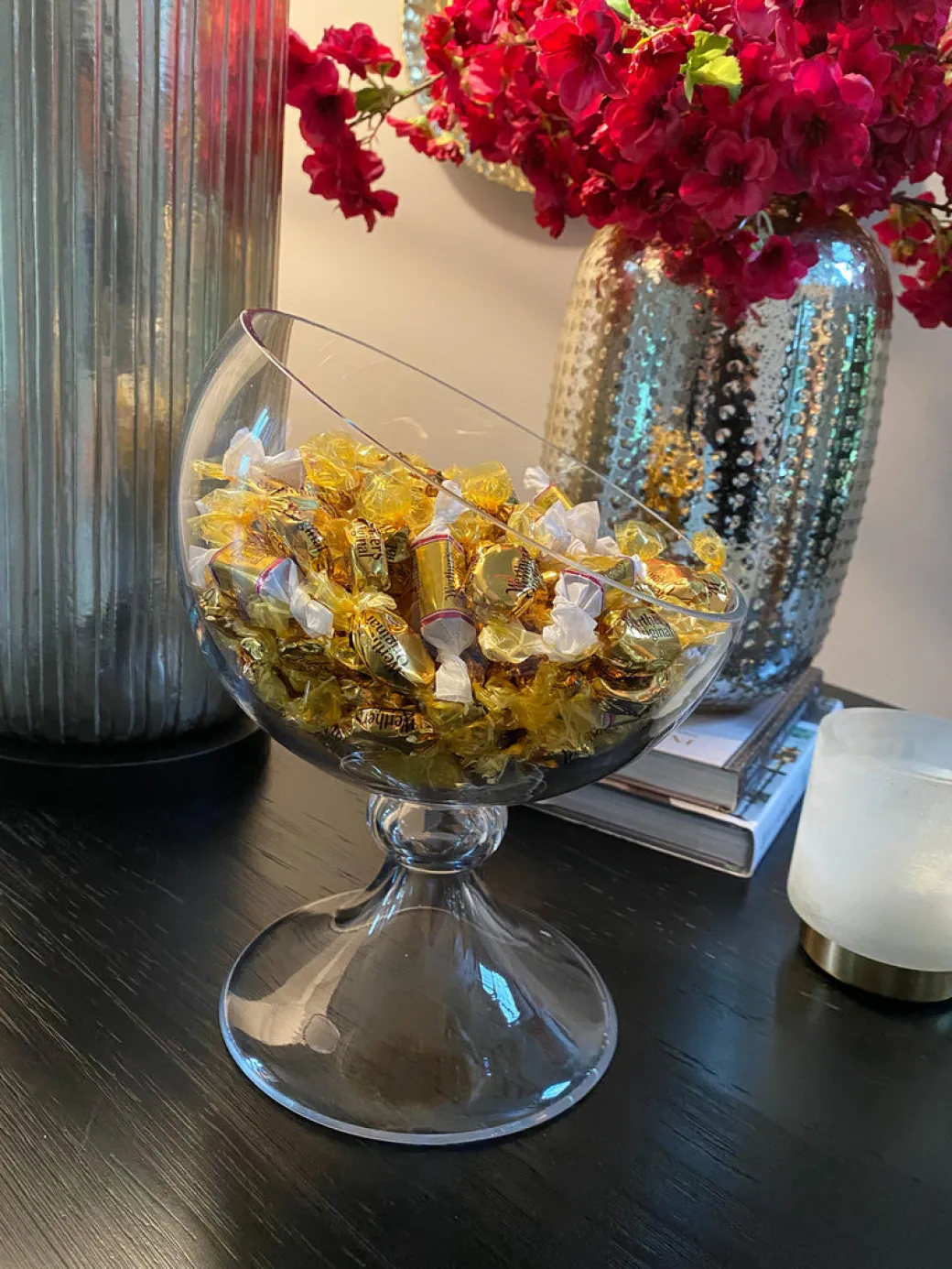 This unique glass globe jar is a very multi-purpose piece. You can use it as a vase, a planter, a server, or just on its own! Place your favorite snacks in it, or display your bathroom essentials in style!