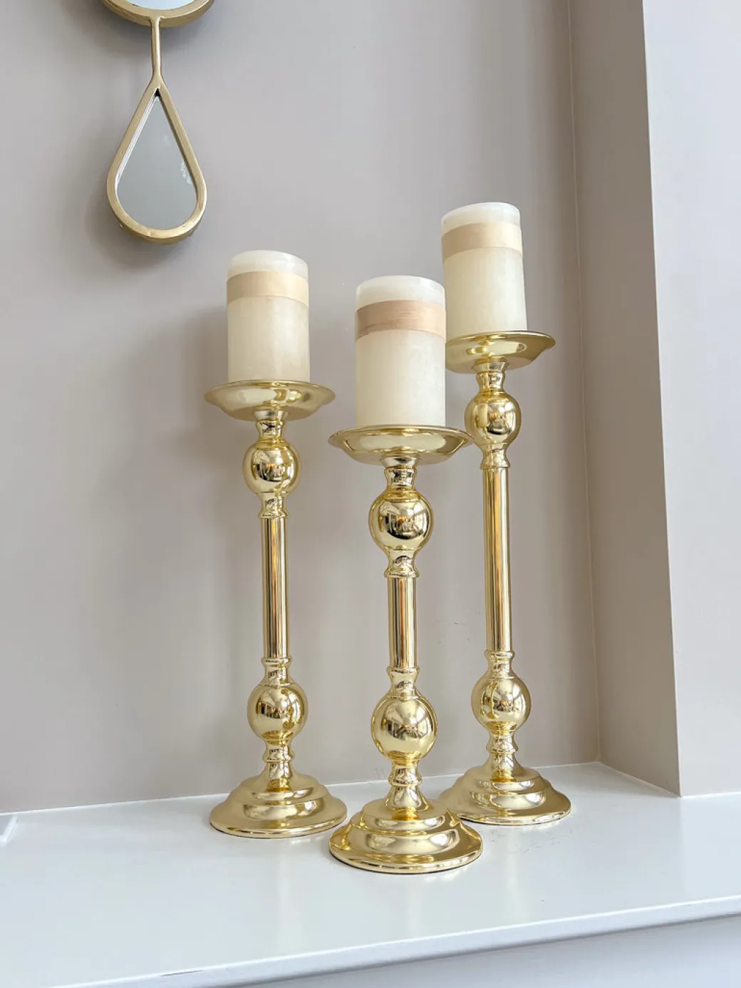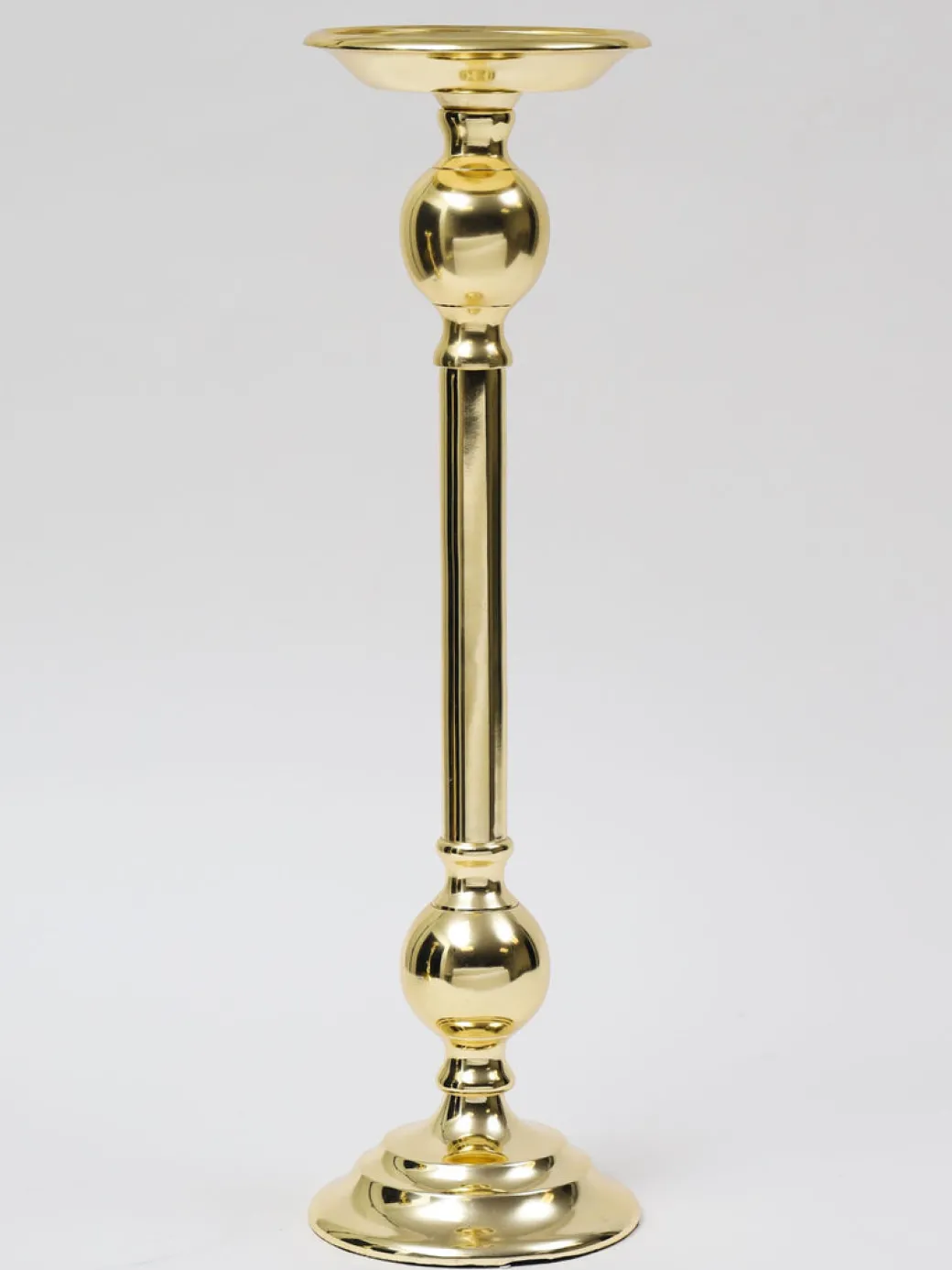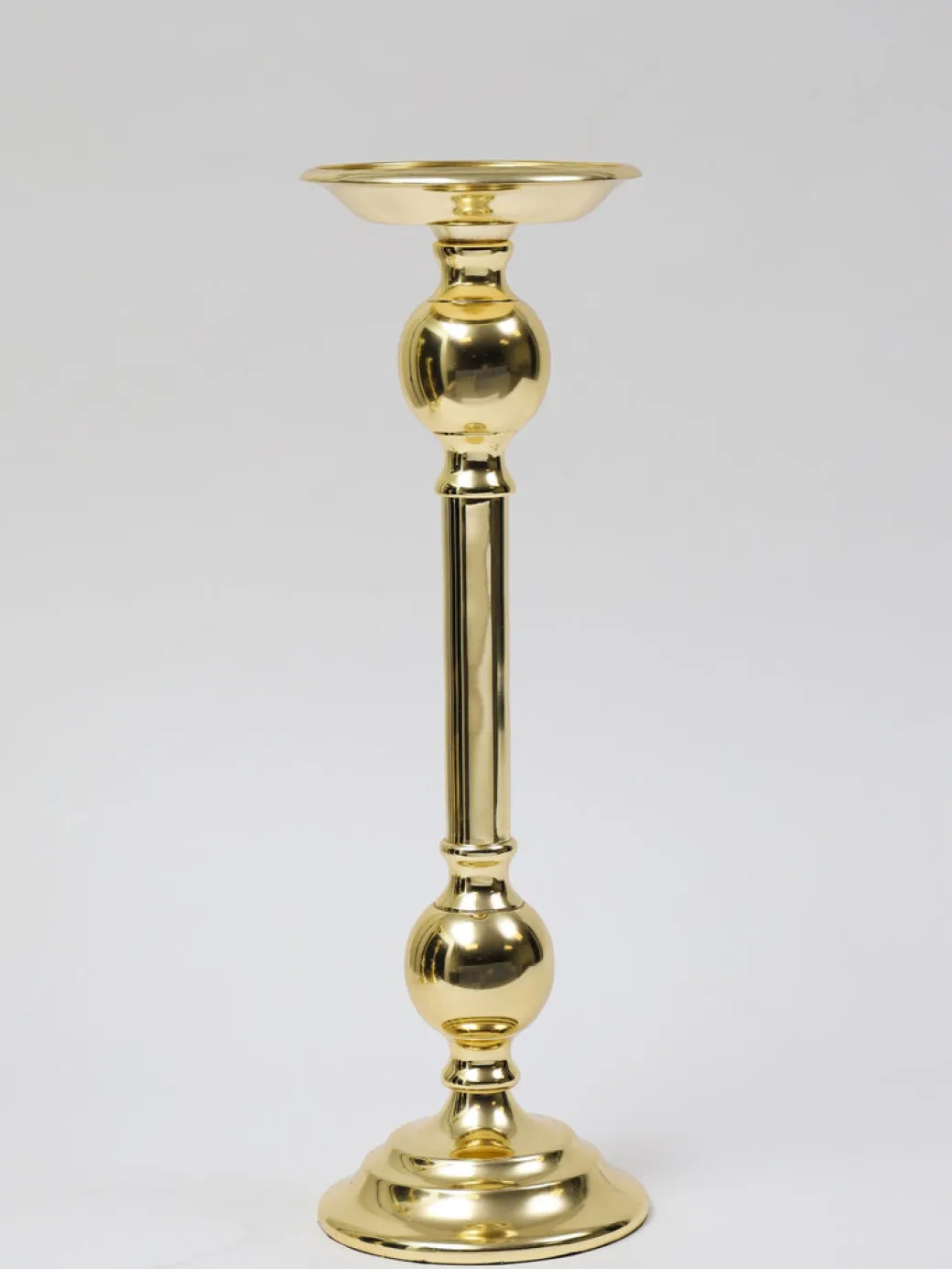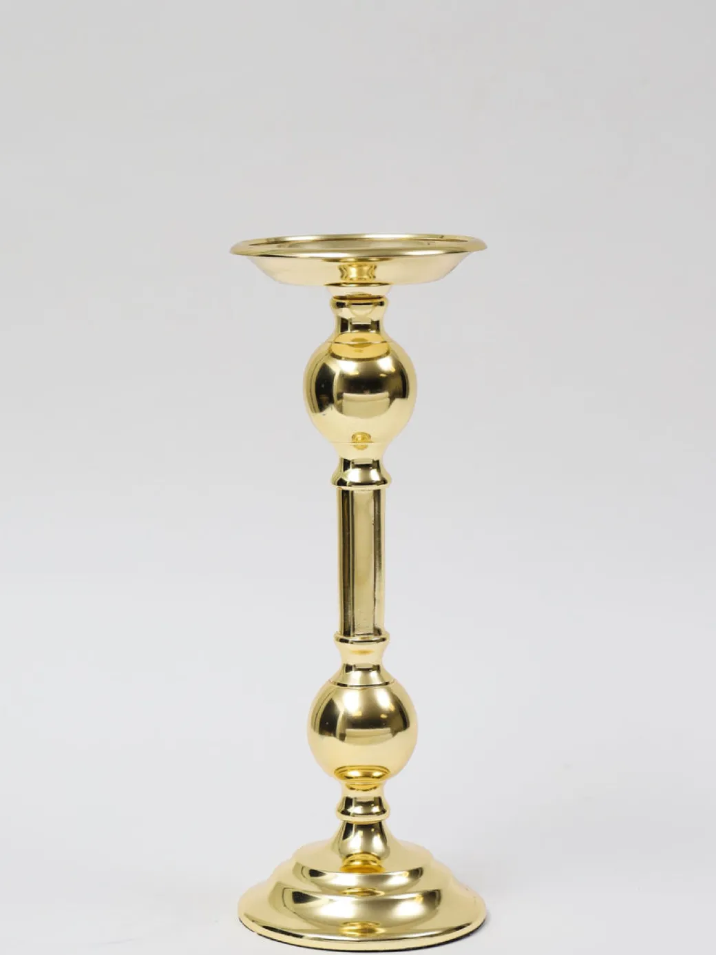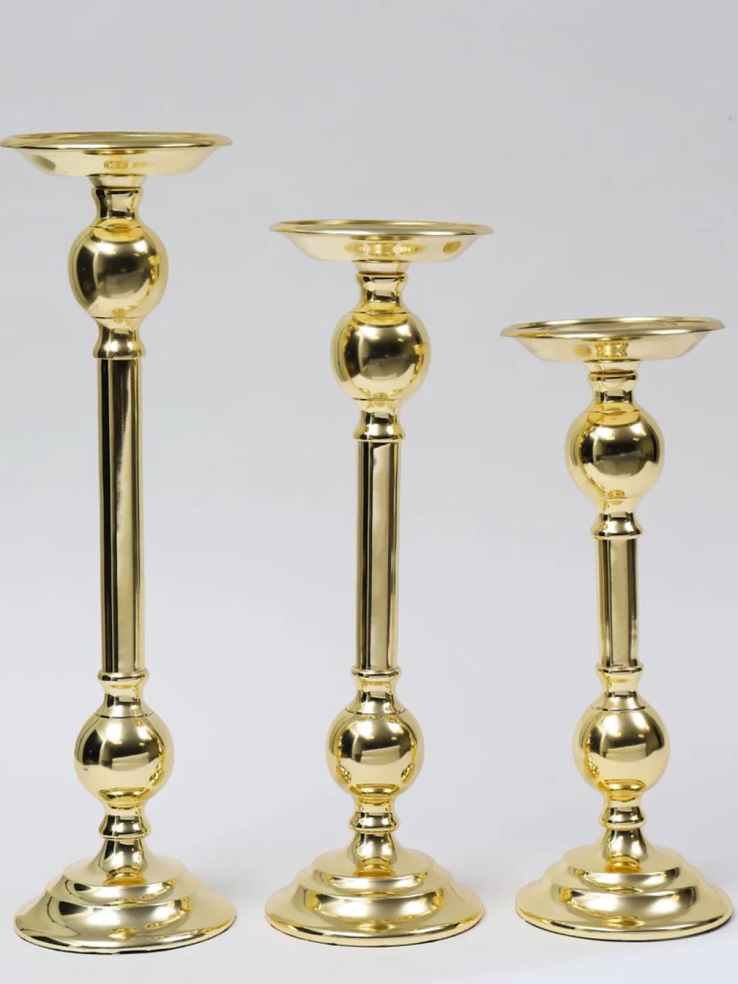 Description: These gorgeous gold candle holders will make a statement! They are timeless and beautiful and will be great in any space!