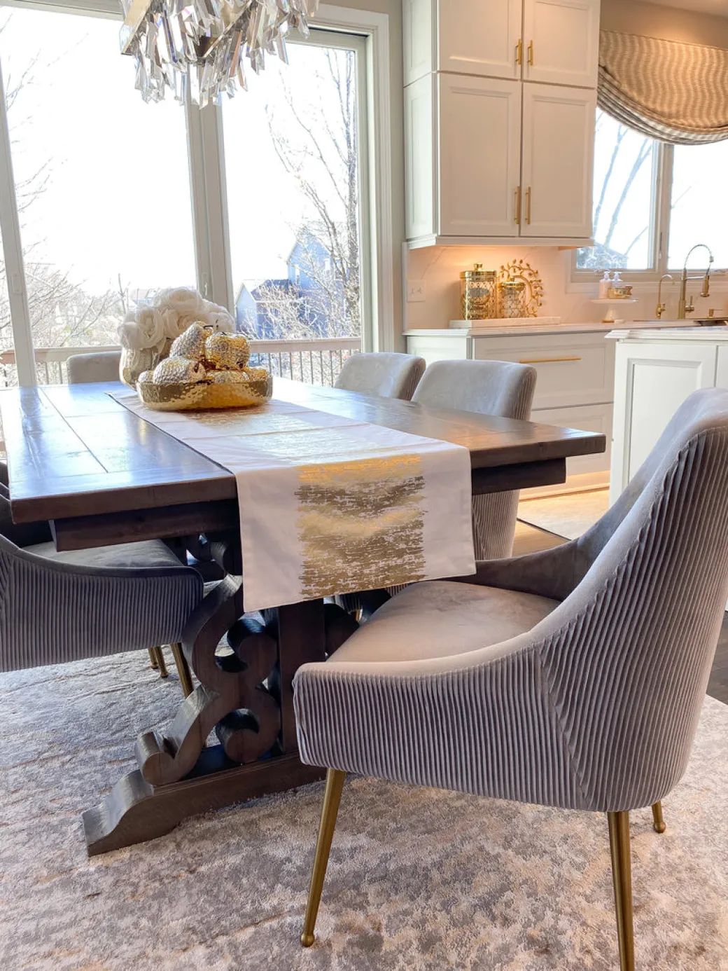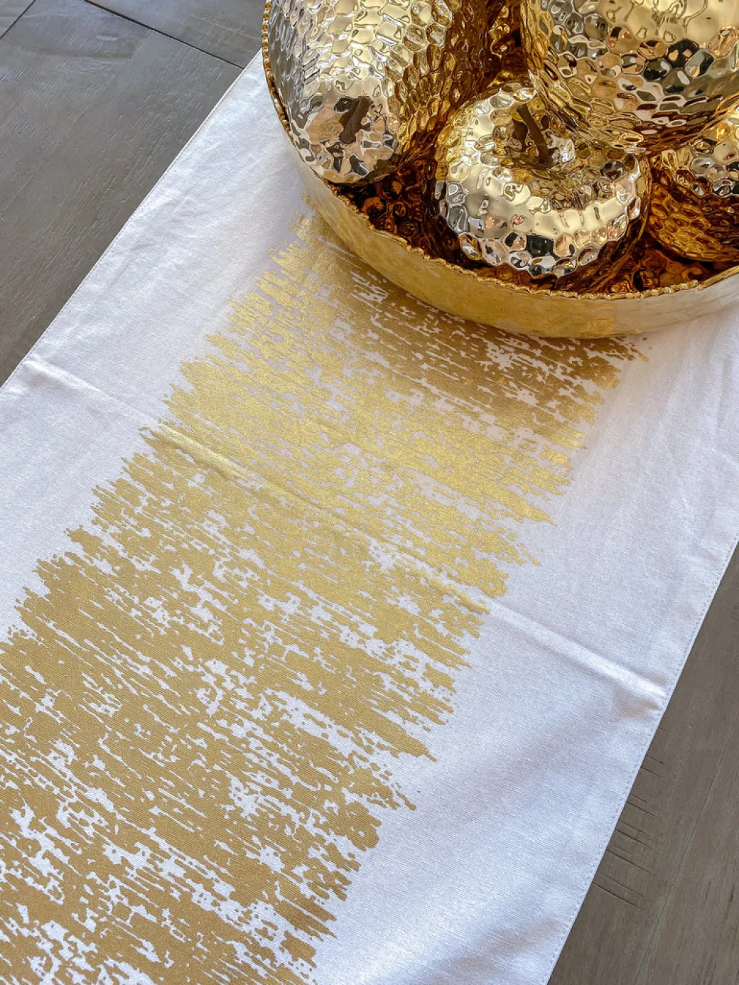 Description: These stunning gold foil patterned table runners will take your dining table to the next level! We love the metallic shimmer that these show. Perfect for entertaining guests or for keeping your table in tip top shape!