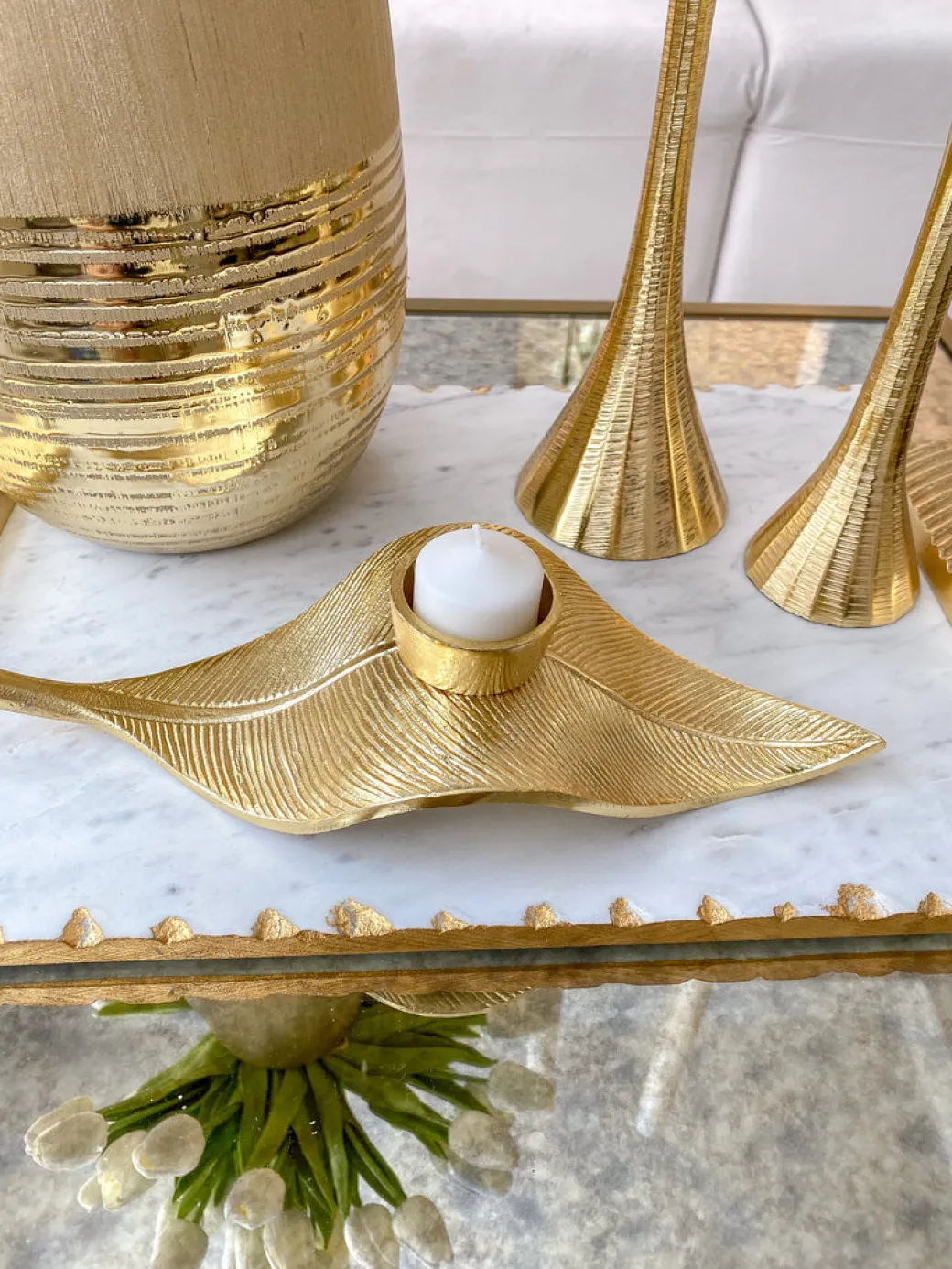 Description: This leaf tealight holder comes in silver and gold and can be used almost anywhere in your home. Use it as a centerpiece, on a coffee table, or anywhere else you can think of. We love the texture and detail in this piece.