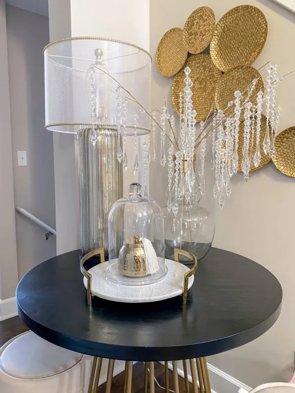 This awesome marble and metal tray features sturdy metal handles with a modern transitional flare and a beautiful round marble slab to hold your favorite pieces.