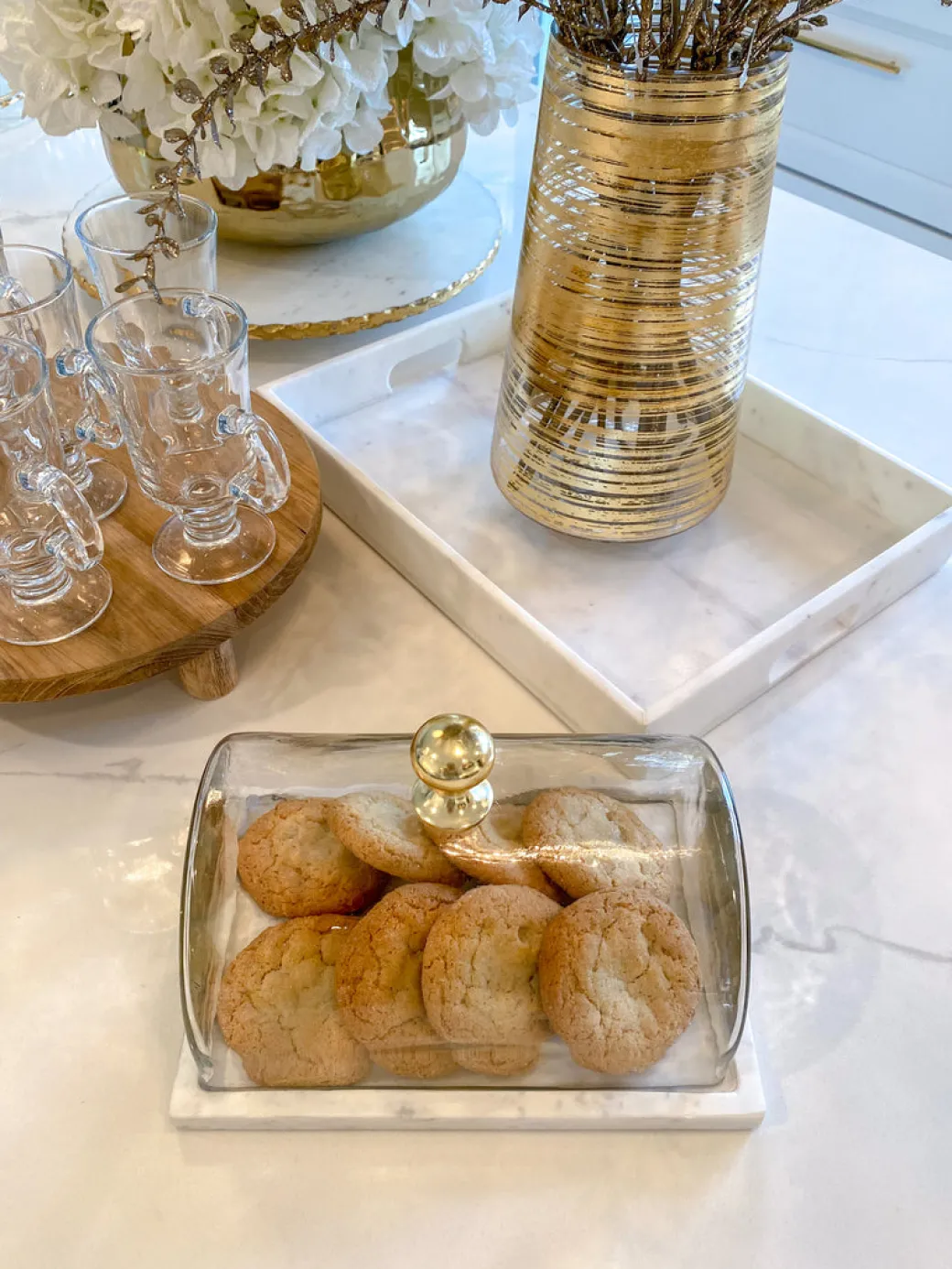Description: Achieve a new level of style and elegance with this marble tray and glass dome! Choose from a silver or gold handle, and add a stunning look to your home display! Whether you use this to serve your favorite treats or display other stunning pieces, this will make a great addition to your home decor!