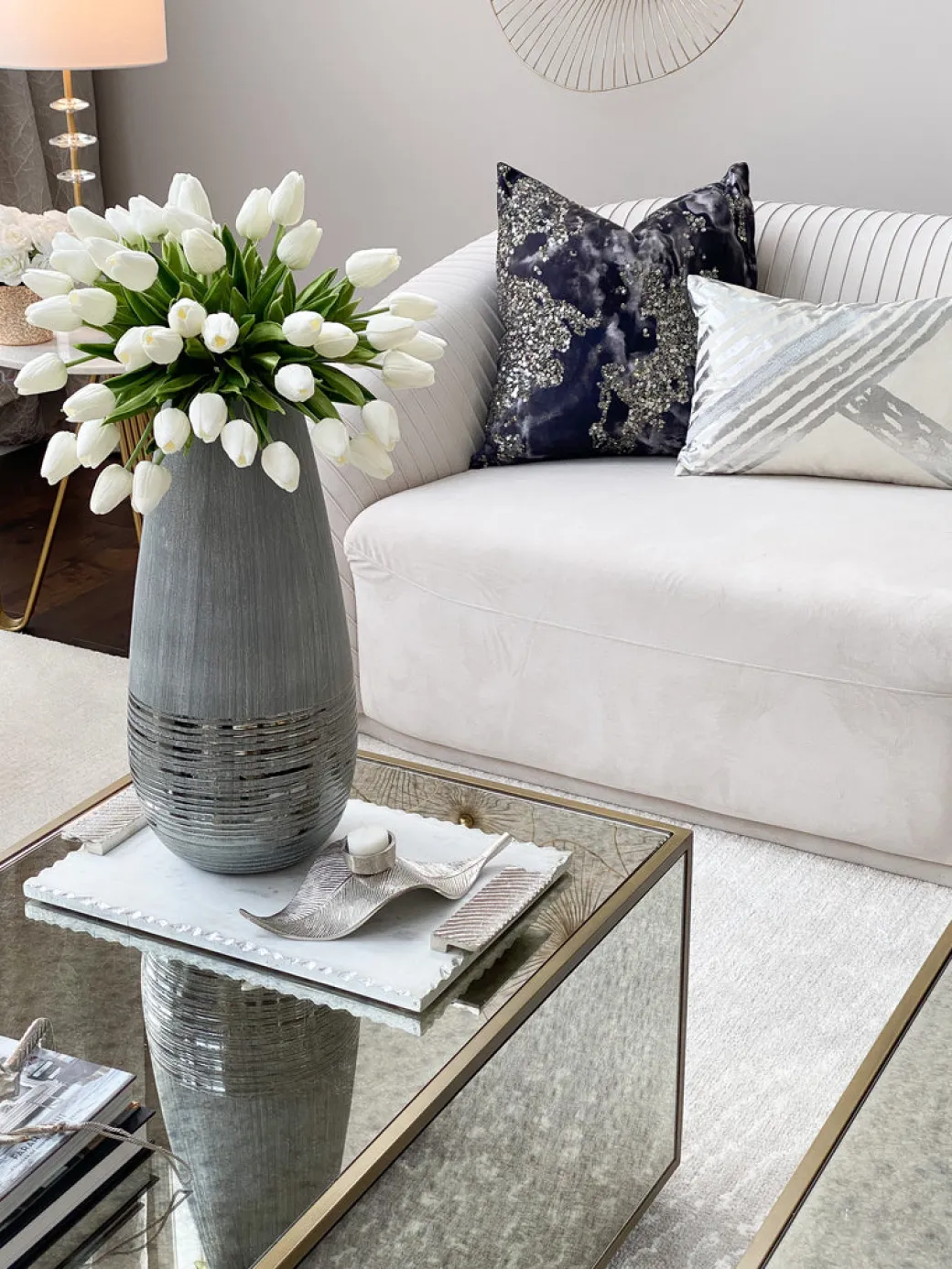 This beautiful marble tray is a simple must have statement in your home! Available in silver and gold, this piece features textured handles and a unique trim to make for a stunning piece!