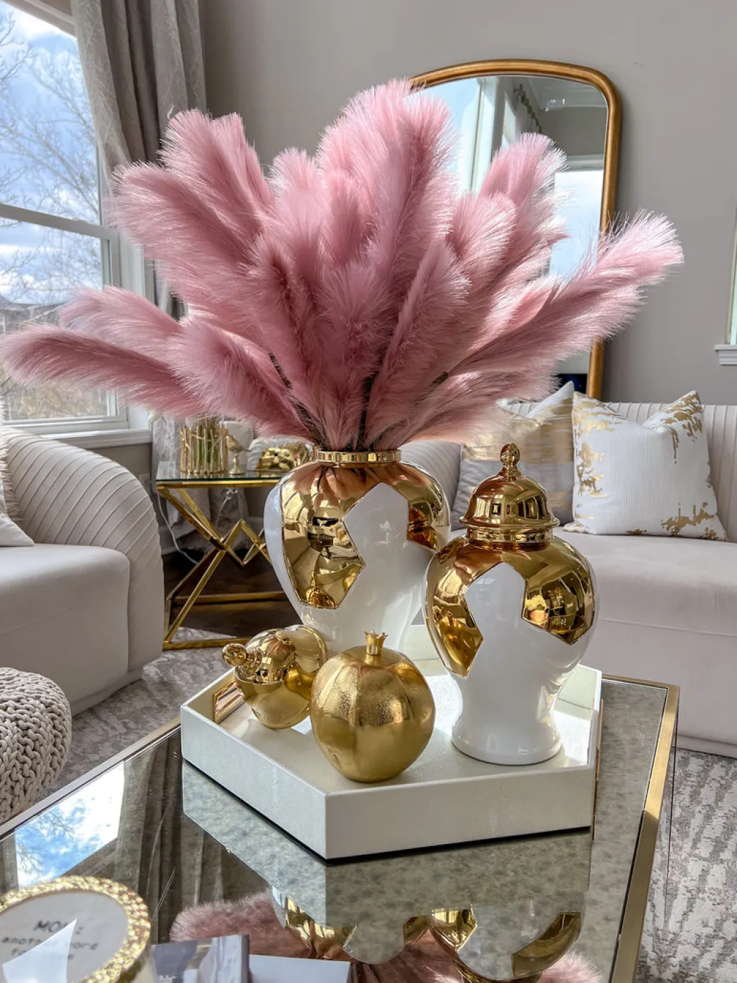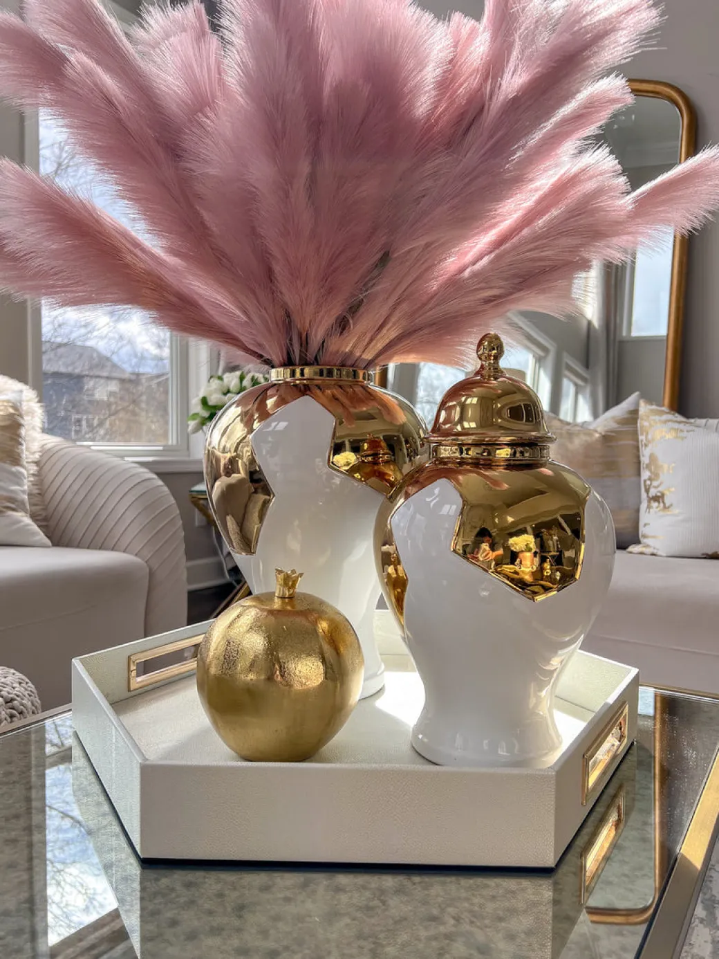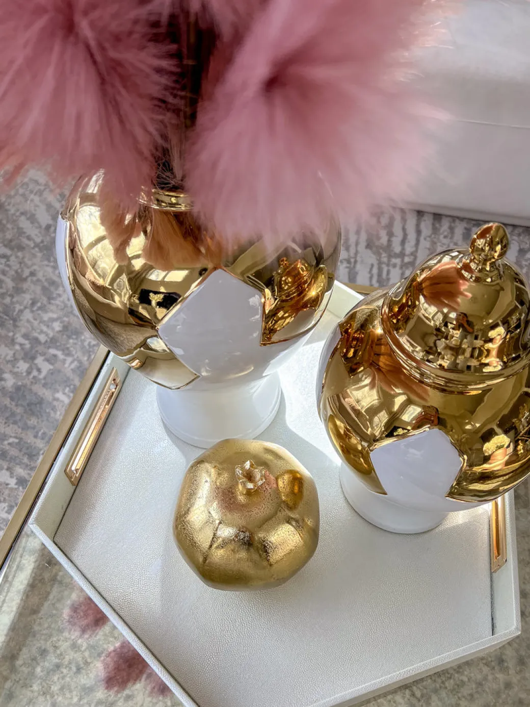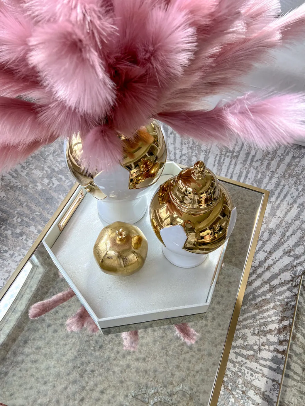 Description: These hexagon trays are so luxurious, they feature gold handle details and faux leather material.