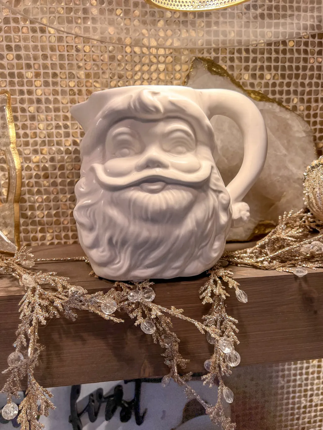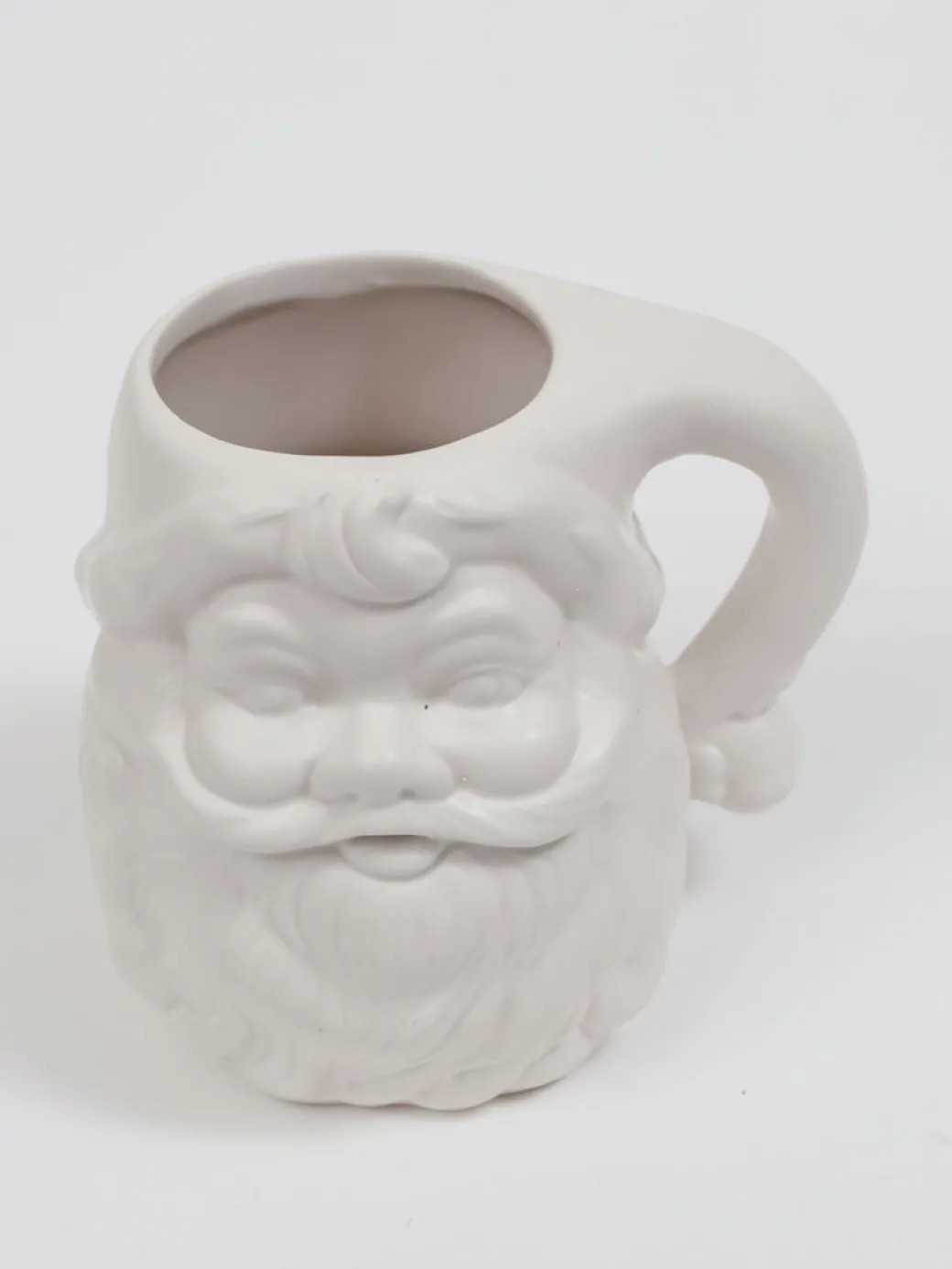 Description: These white Santa mugs are a holiday need. Can be used to drink your favorite winter drink or use to put stems in!