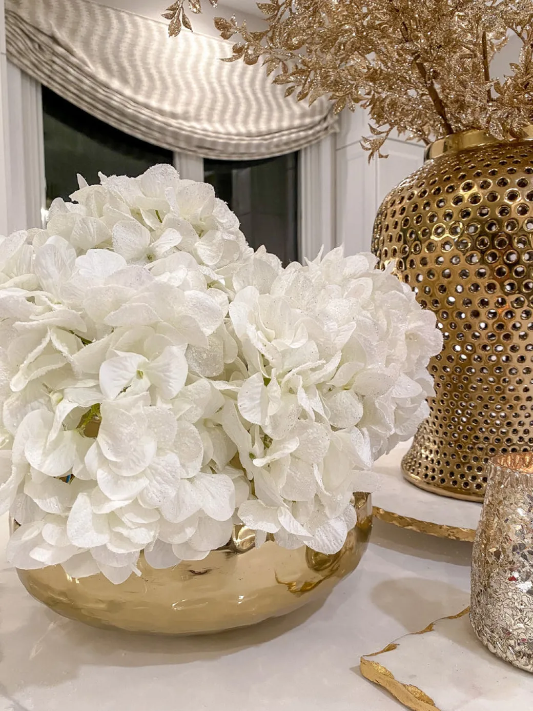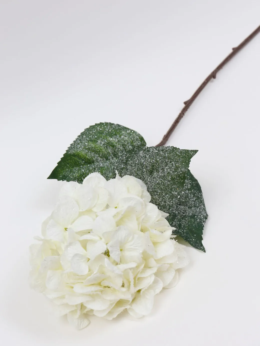 This snowy white hydrangea stem is a beautiful holiday take on a classic floral stem! style in your favorite bowl for vase!