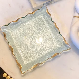 This beautiful square crystal tray is perfect for your coffee table or your island and has many different uses!