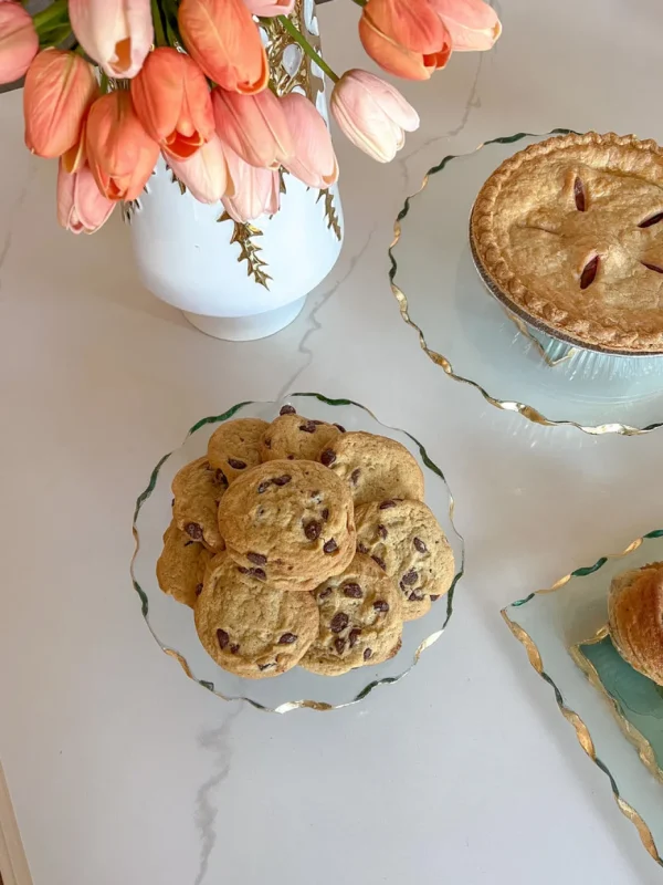 Description: This eye-catching glass cake plate is great for displaying treats or decor! Or place it next to your sink and place a candle and your favorite hand lotion on it.