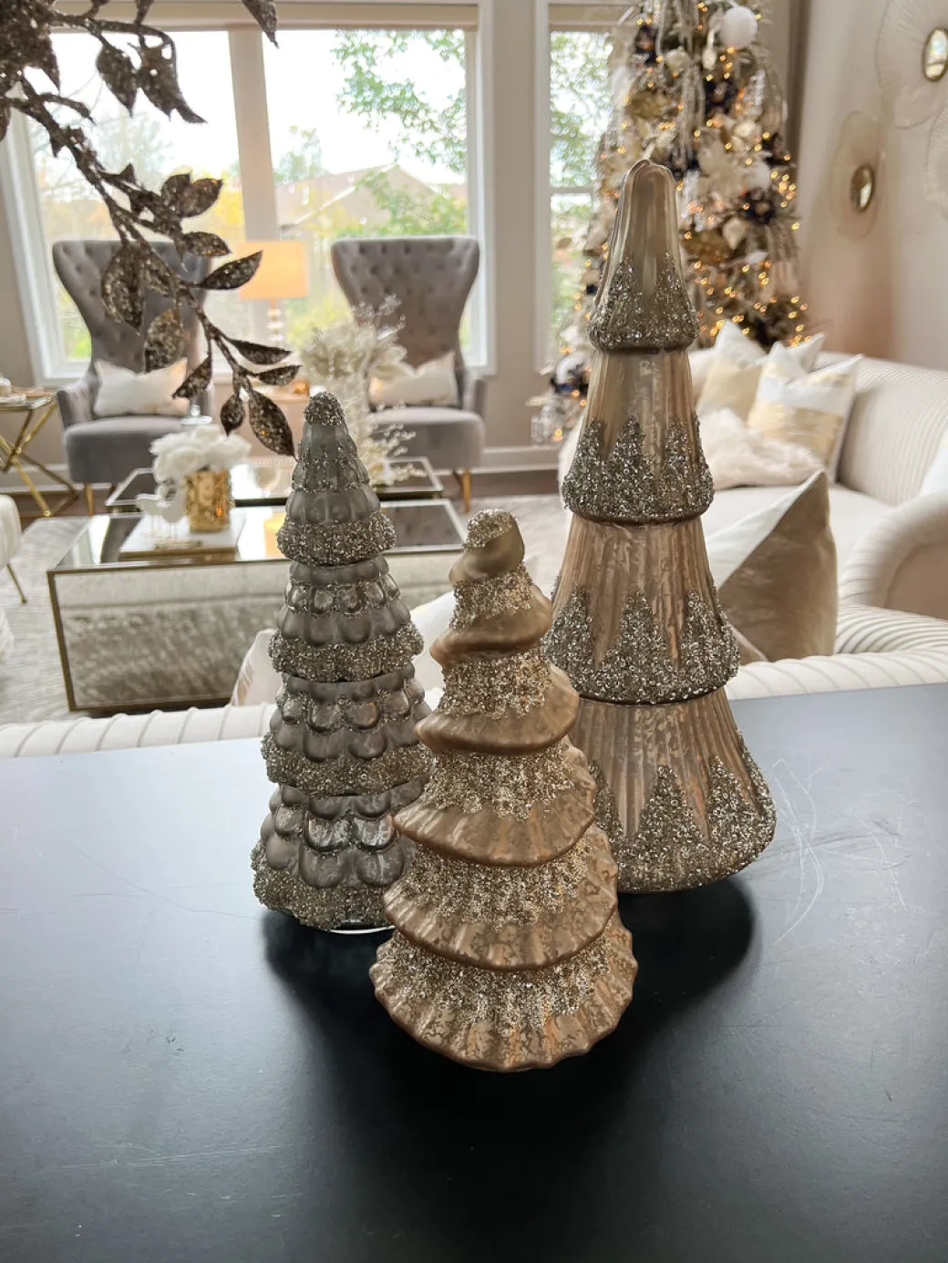 Description: This mercury glass tree with its neutral silver and gold coloring and beautiful glitter finish will instantly elevate any table or shelf as it shimmers in the light effortlessly.
