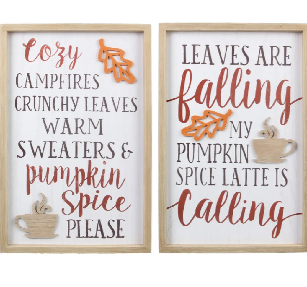 Description: These adorable wooden signs will put you in a festive mood for fall! We love the warm colors and creative text on these signs. Available in 2 styles!