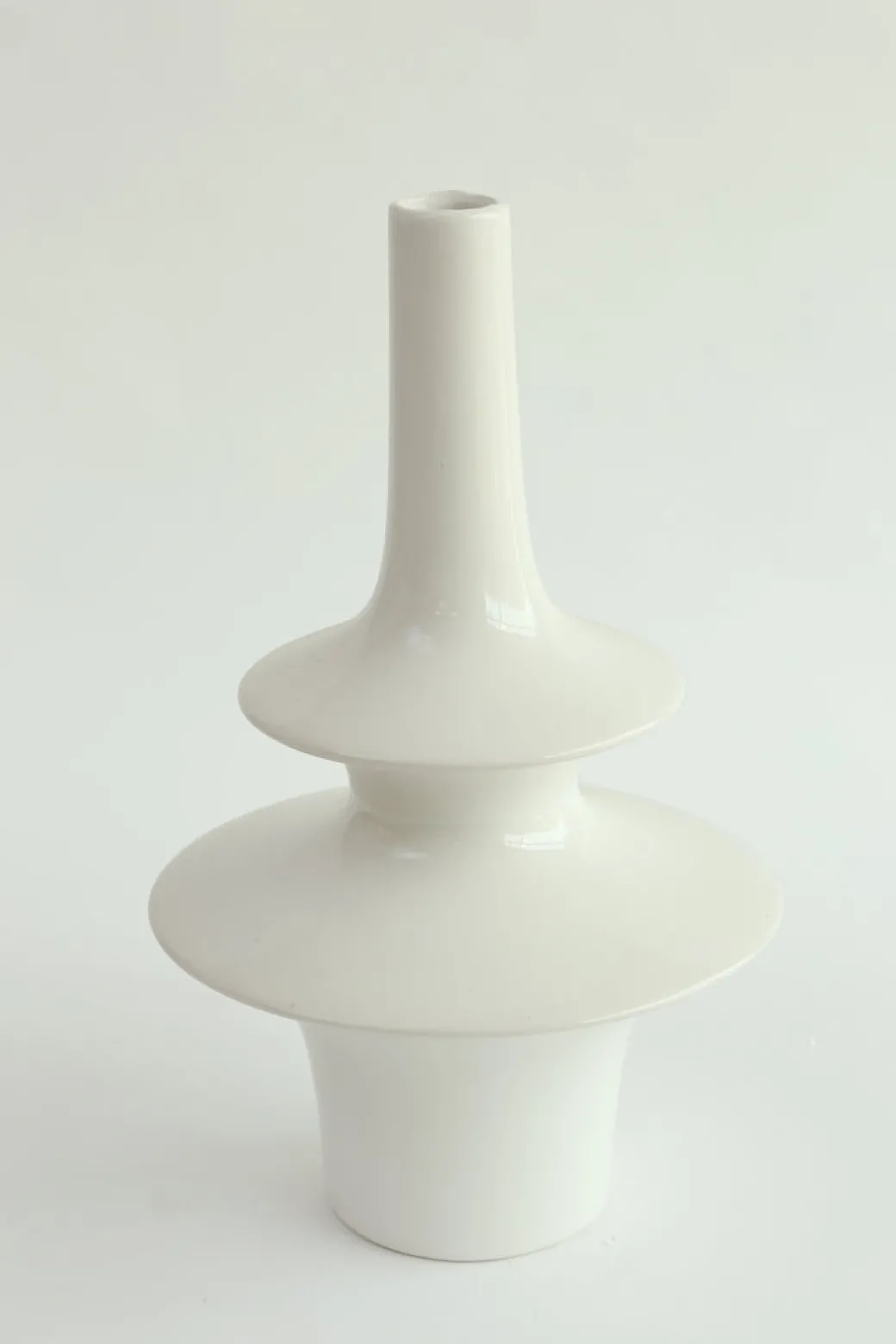 This abstract vase has a very cool and interesting shape that we love! Style it with your favorite faux floral for a lovely look.