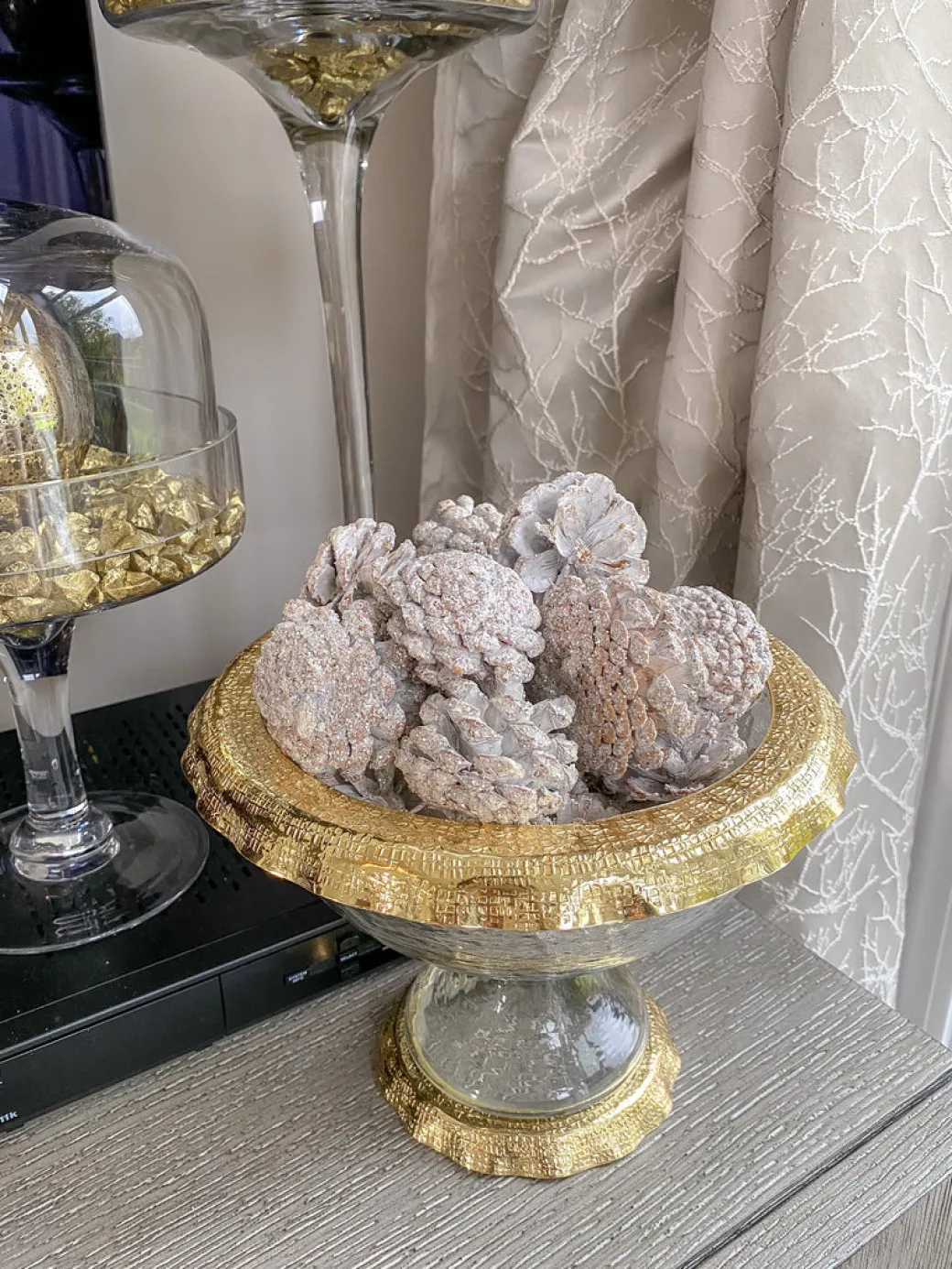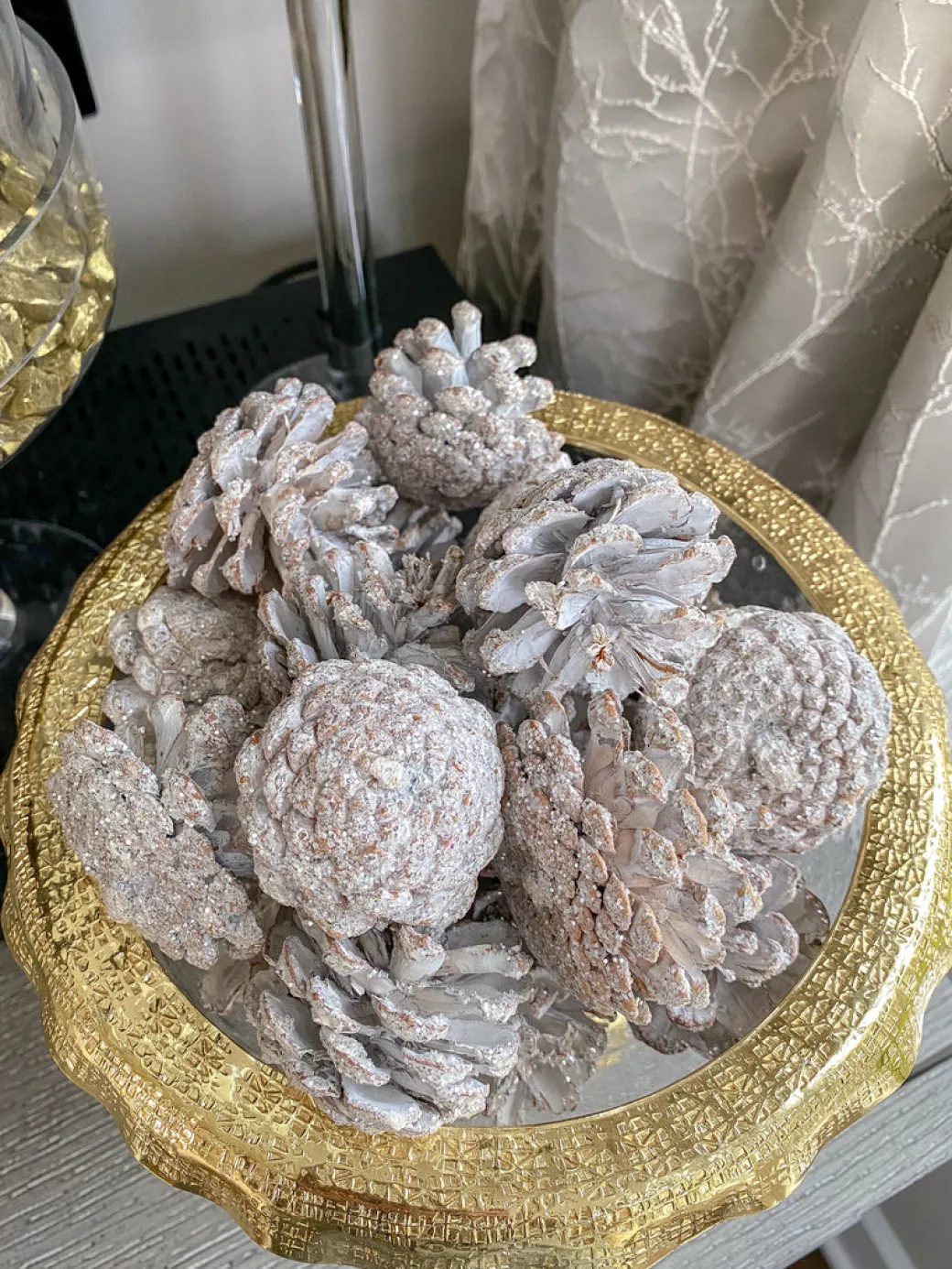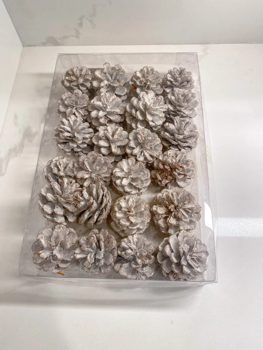 These white flocked pinecones are the definition of a winter wonderland! Use them as a bowl filler or to decorate your tree! Comes with about 20 pinecones!