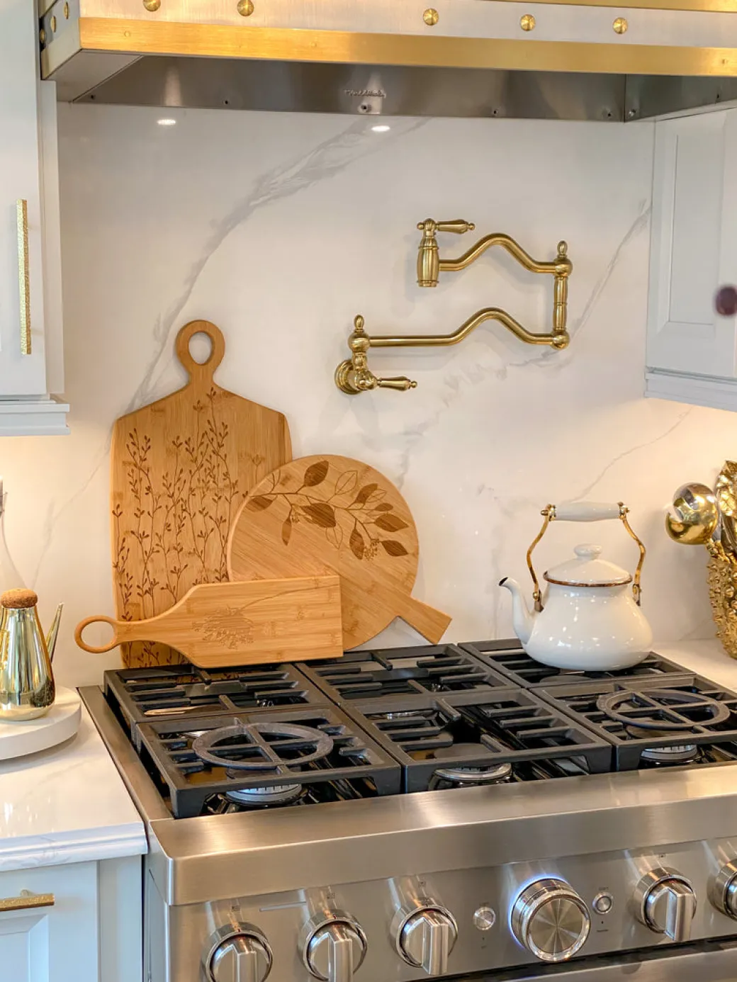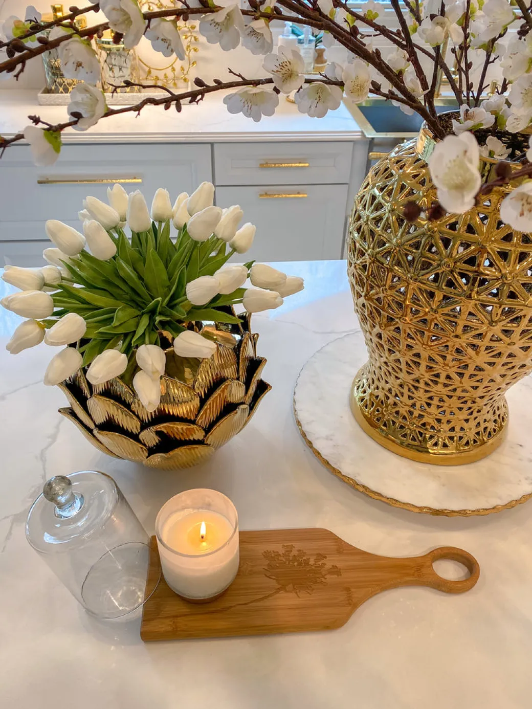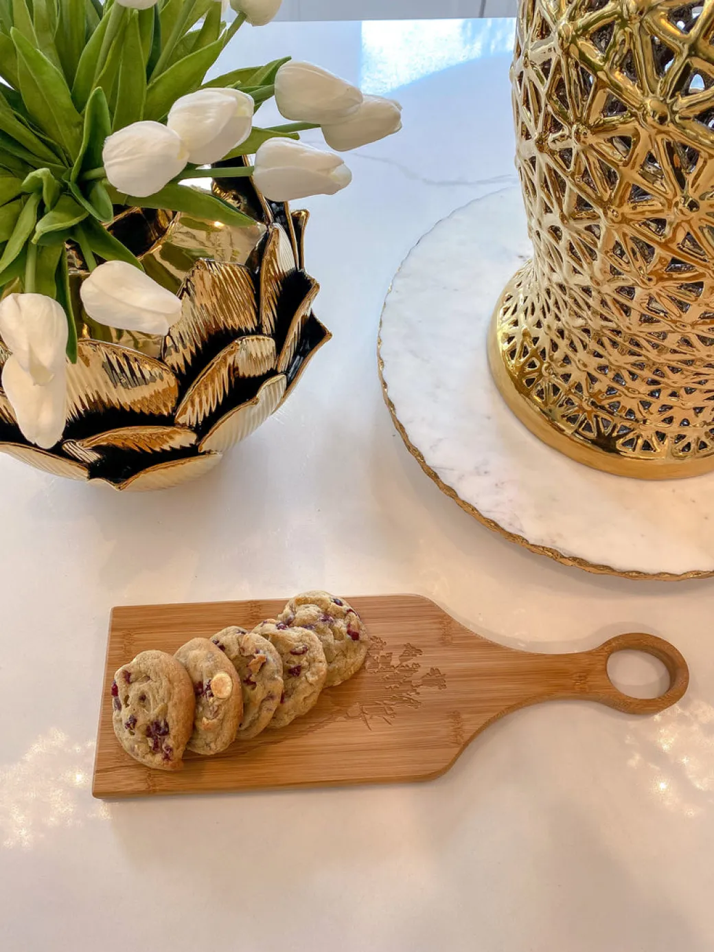 Description: This rectangle bamboo board is a fun layering piece! Stand it up and layer it with other boards, or set it down and put your favorite candle on it! We love the fun wild flower carvings.